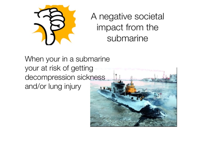 When your in a submarine your at risk of getting decompression sickness and/or lung injury