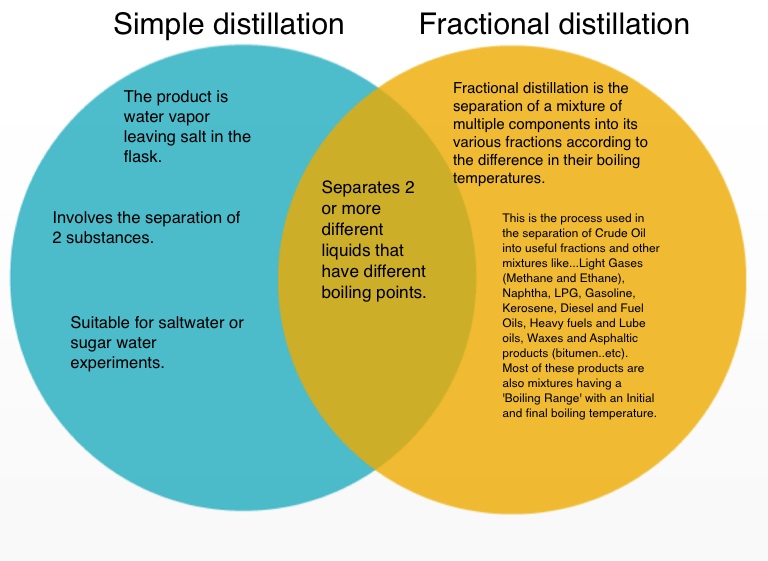 This is the process used in the separation of Crude Oil into useful fractions and other mixtures like...Light Gases (Methane and Ethane), Naphtha, LPG, Gasoline, Kerosene, Diesel and Fuel Oils, Heavy fuels and Lube oils, Waxes and Asphaltic products (bitumen..etc).