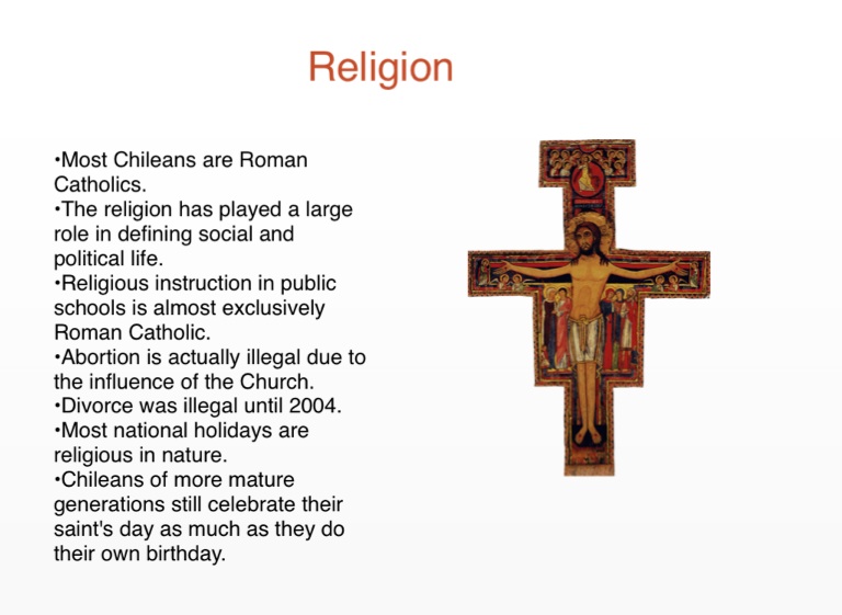 •Most Chileans are Roman Catholics.