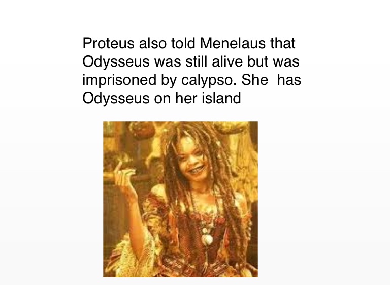 Proteus also told Menelaus that Odysseus was still alive but was imprisoned by calypso. She has Odysseus on her island