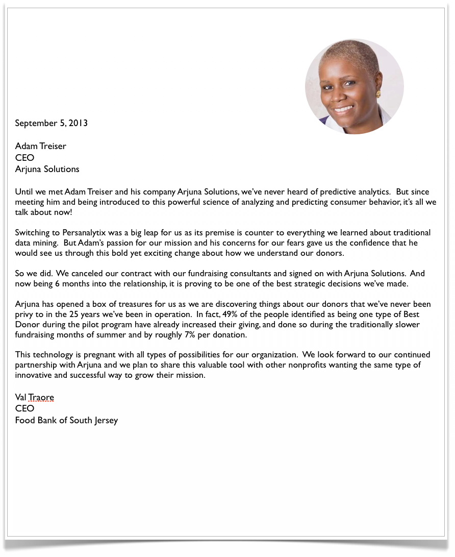 So we did. We canceled our contract with our fundraising consultants and signed on with Arjuna Solutions. And now being 6 months into the relationship, it is proving to be one of the best strategic decisions we’ve made.