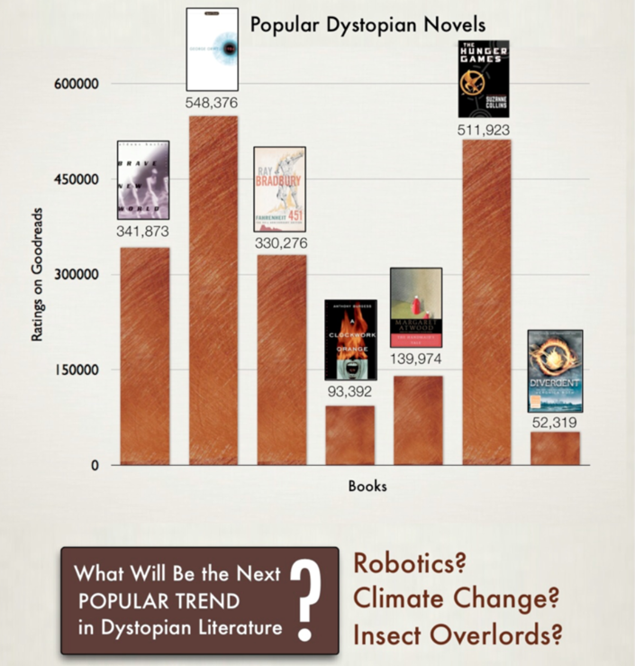 Dystopic Novels: - Brave New World - 1984 - Farhenheit 451 - The Giver - The Hunger Games - Divergent
