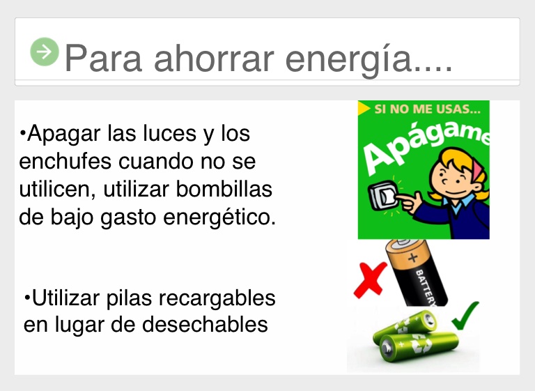 •Apagar las luces y los enchufes cuando no se utilicen, utilizar bombillas de bajo gasto energético.