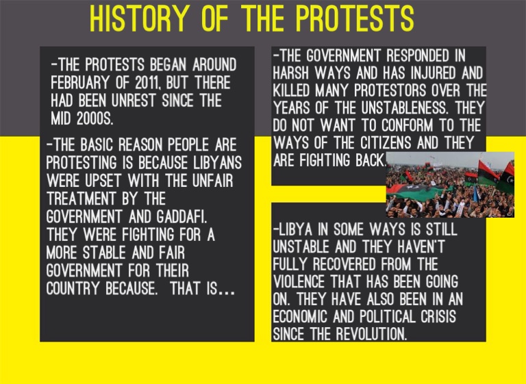 -The basic reason people are protesting is because Libyans were upset with the unfair treatment by the government and Gaddafi. They were fighting for a more stable and fair government for their country because. That is why they protested.