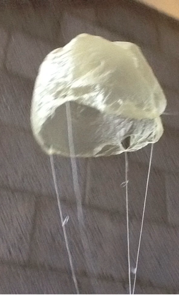 De enige keuzen voor de parachute zelf was alleen een plastic zak.