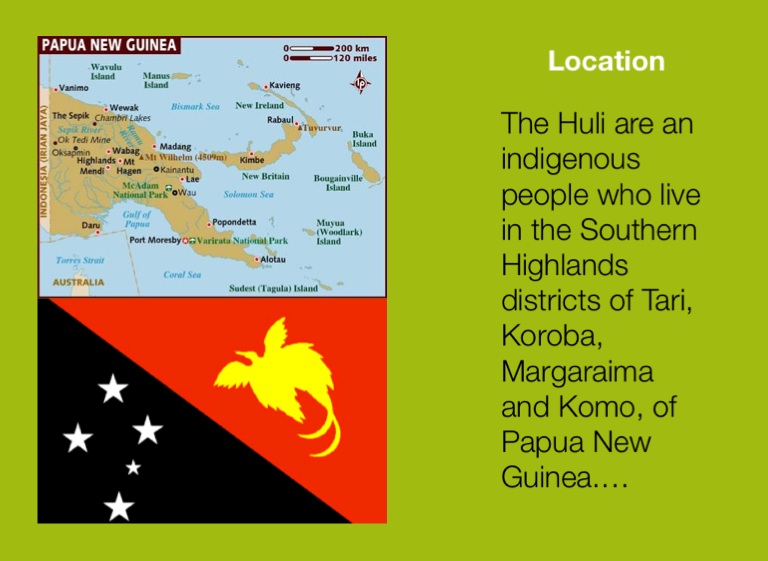 The Huli are an indigenous people who live in the Southern Highlands districts of Tari, Koroba, Margaraima and Komo, of Papua New Guinea.