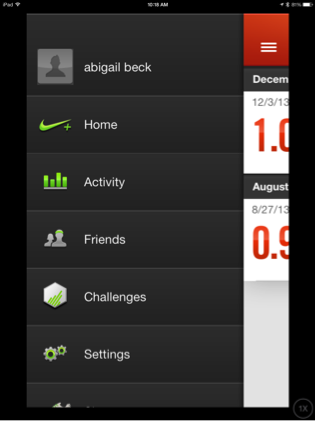 The three horizontal lined button in the top, left-hand corner allows you to look at your activity (past runs), connect with friends, edit your settings, and even connect with the Nike Online Store