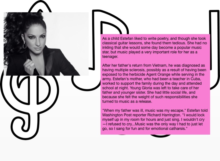 As a child Estefan liked to write poetry, and though she took classical guitar lessons, she found them tedious. She had no inkling that she would some day become a popular music star, but music played a very important role for her as a teenager.