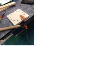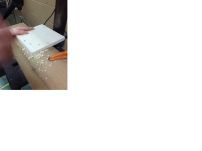 I used a templet to tap the hole where they need to go. Also I used the drill press to drill the holes and put cylinder pieces of wood in the holes and chisel them flat, then drilling angled holes for assembling , then I sanded it down smooth.
