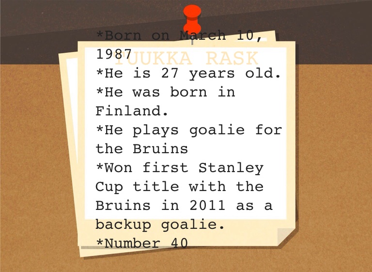 *Won first Stanley Cup title with the Bruins in 2011 as a backup goalie.