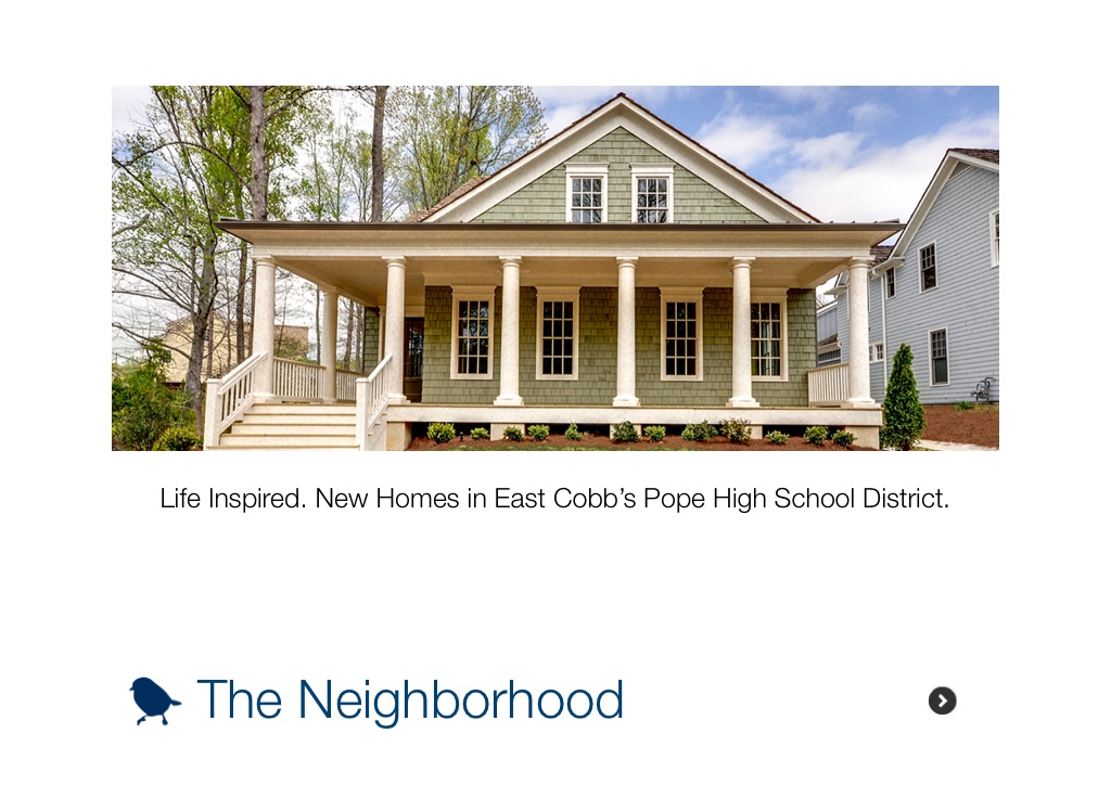 Enjoy natural surroundings and charming streetscapes with a prestigious East Cobb address at Mill Creek Preserve, a collection of homes surrounded by scenic landscapes. Set behind a landmark entrance just off Holly Springs Road, Mill Creek Preserve offers an idyllic setting along Sewell Mill Creek. Excellent East Cobb schools and public parks including the East Cobb YMCA are nearby, while shopping, dining and entertainment can be found just minutes away at Merchant's Walk and the Avenue East Cobb. For more information, visit www.jwhomes.com.