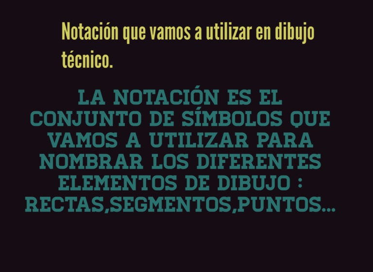 La notación es el conjunto de símbolos que vamos a utilizar para nombrar los diferentes elementos de dibujo : rectas,segmentos,puntos...