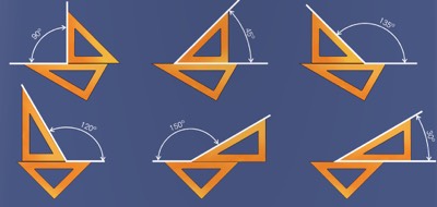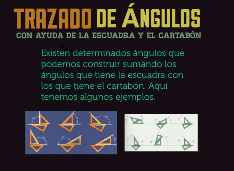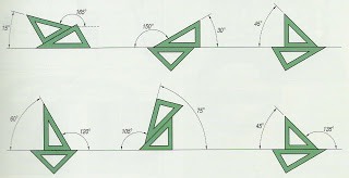Existen determinados ángulos que podemos construir sumando los ángulos ue tiene la escuadra con los que tiene el cartabón. Aquí tenemos algunos ejemplos.