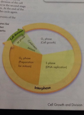 The eukaryotic cell cycle has 4 phases: G1, S, G2 & M. The growing stage in cell division is also know as interphase, a long period of the cell cycle between one cell division and the next.