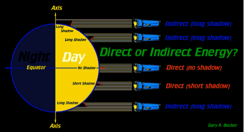 Direct- When the Earth receives the most sunlight in a area at a 90 degree angle.
