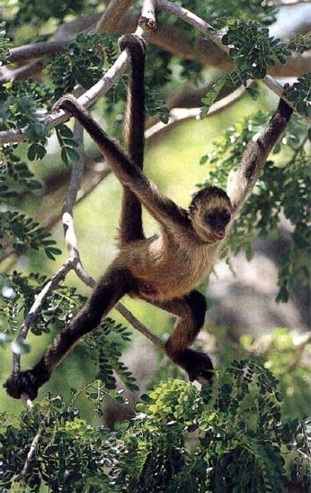 A spider monkey has some special features here are some it's strong, long tail, agile hands and agile feet.