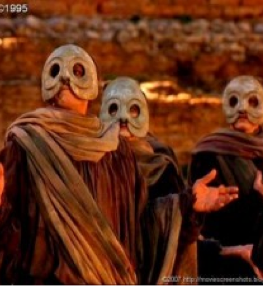 In the Ancient Greek theater,the actors,all men wore comic and tragic masks were consumed wearing paddled clothes.