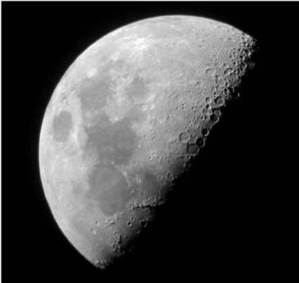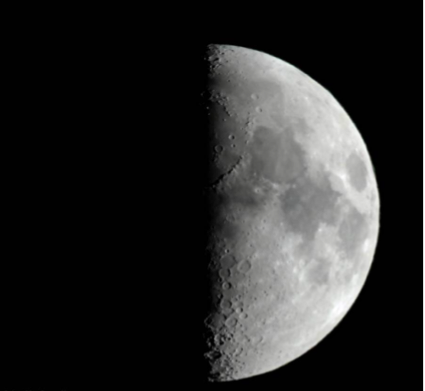The first quarter moon is actually the third phase of the moon each cycle. In the Northern Hemisphere during this phase, the right hand 50% of the moon is visible during the afternoon and the early part of the night. In the Southern Hemisphere the left hand 50% of the moon can be seen. This lunar phase follows the new moon and the waxing crescent.