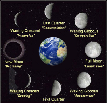 Then the cycle restarts back on the New Moon. So then it goes back again to New Moon, Waxing Crescent Moon,First Quarter Moon,Waxing Gibbous Moon,Full Moon,Waning Gibbous Moon,Third Quarter Moon, and last Waning Crescent Moon.