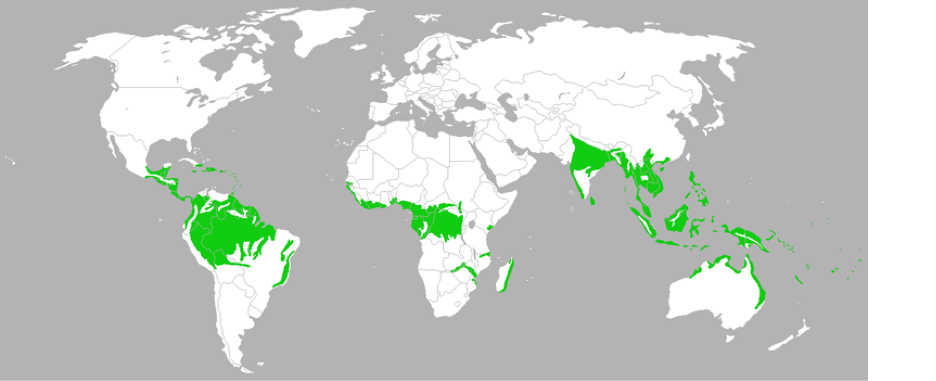 El bosque tropical es una de la zonas más húmedas de el planeta y se localizan en la franja de climas tropicales, ahí también corren los ríos más grandes del mundo