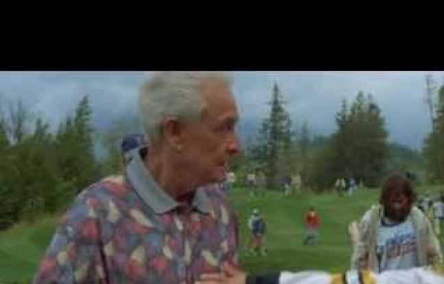 The scene from Happy Gilmore has Bob Barker and Adam Sandler fist fighting on the golf course. It's funny because it is a good fight between them.