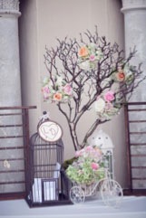 Example: Soft shades of blush, taupes and pastels will compliment each other. While accents of white, ivory and greens will make the floral elements pop. Wood and brass tones will give a masculine feel to this otherwise feminine color palette.