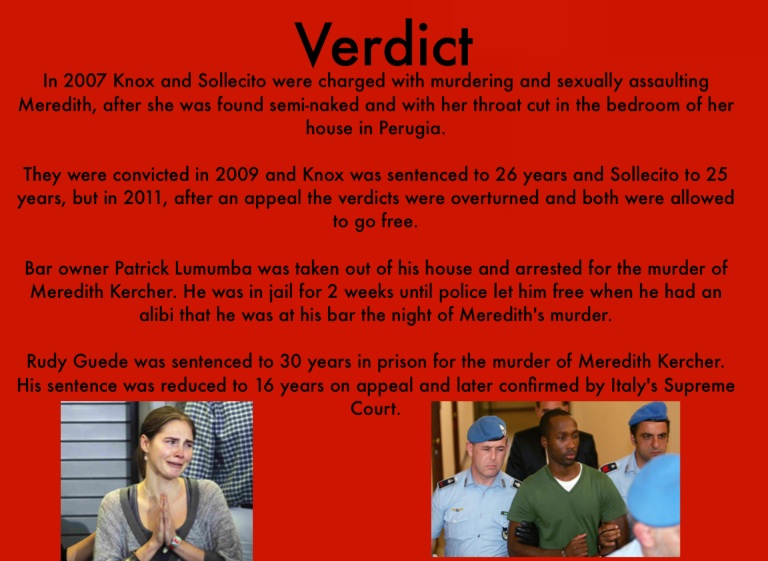 They were convicted in 2009 and Knox was sentenced to 26 years and Sollecito to 25 years, but in 2011, after an appeal the verdicts were overturned and both were allowed to go free.