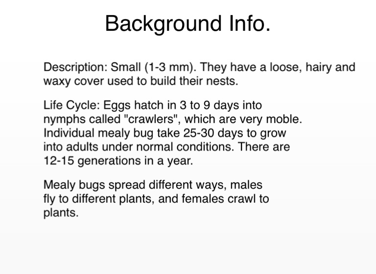 Mealy bugs spread different ways, males fly to different plants, and females crawl to plants.