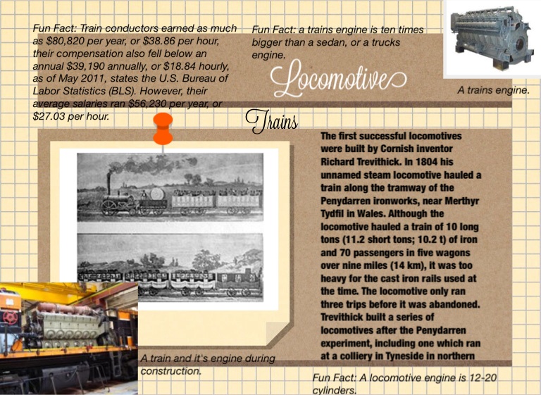 Fun Fact: a trains engine is ten times bigger than a sedan, or a trucks engine.