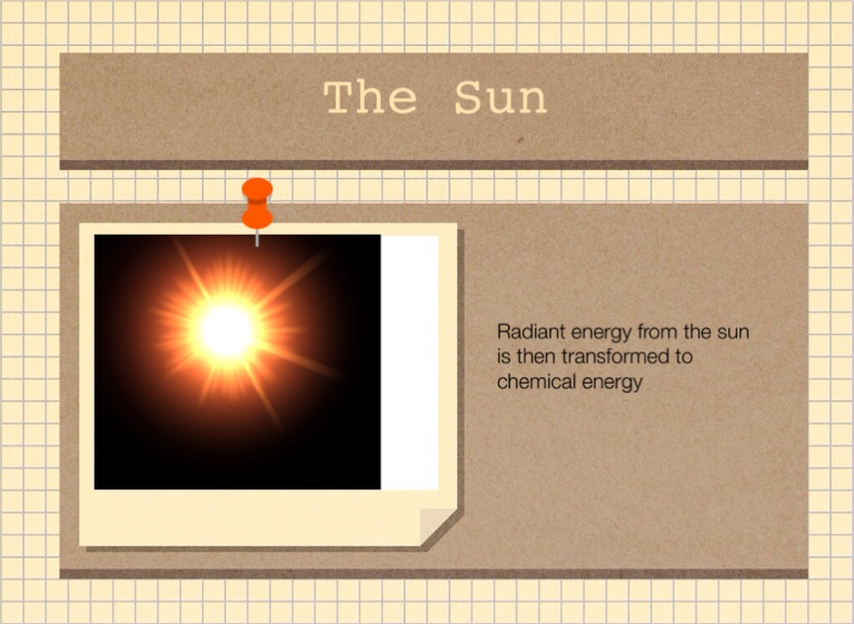 Radiant energy from the sun is then transformed to chemical energy