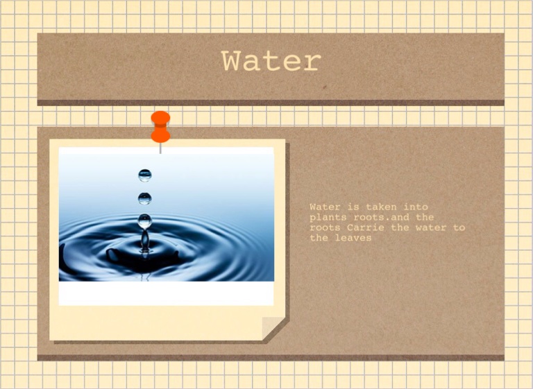 Water is taken into plants roots.and the roots Carrie the water to the leaves