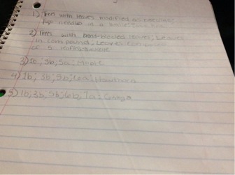 The Deciduous trees will be a thin leave and will change colors in the fall, then eventually fall off. The Evergreen trees are either leave or needle like. They stay like this all year, green and the same shape.