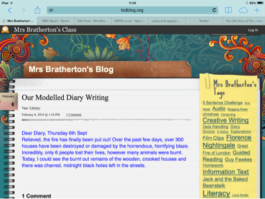 We worked as a team to create a good example of a diary entry before we went off to write our own. Using all of our experiences this week, we used all the ideas we generated to make our diary entires.