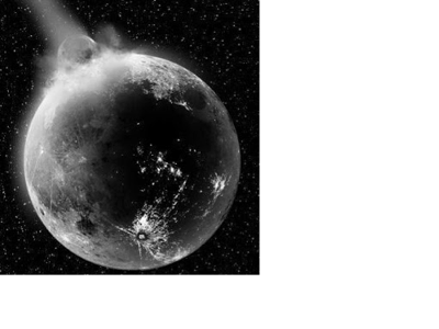 Instabilities in the orbits of the two orbiting satellites brought both of them into a collision path and pancaked the smaller moon into the larger.