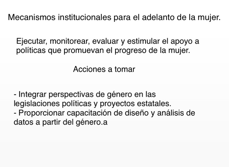 Mecanismos institucionales para el adelanto de la mujer.