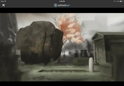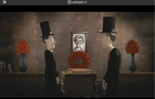 This is an example of situational irony because it show these two guys who work for a funeral home. Who are delivering a dead body to the church to be buried. Along the way they manage to survive and keep the body and casket intact, only to be squished by a boulder