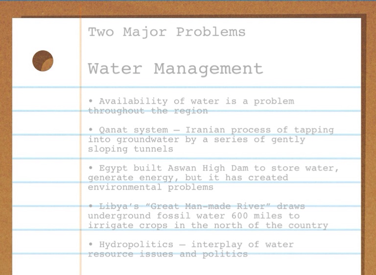 • Egypt built Aswan High Dam to store water, generate energy, but it has created environmental problems