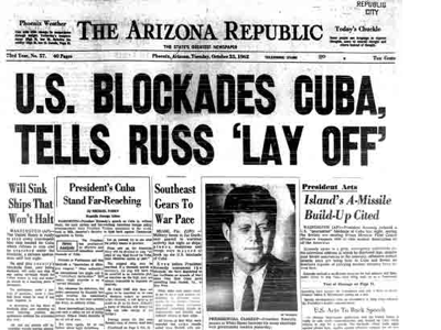 In 1962, an american spy plane noticed that the Soviet Union was building nuclear missile launch sites on the island of Cuba. President Kennedy did not want the Soviet Union and Cuba to know that he had discovered the missiles. He met in secret with his advisors for several days to discuss the problem. Kenedy then ordered ships to surround the island of cuba to hopefully “quarantine” them. He then later made a public address to the nation about this crisis.