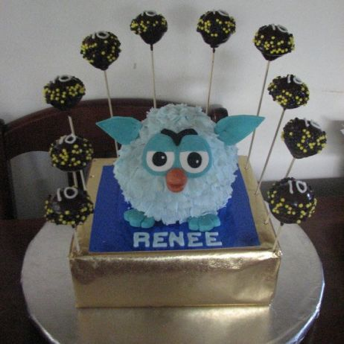 This fun Furby cake would suit any age or taste. It can be made in any colour to match any Furby you may have at home, or just a favourite colour you have. Also comes with 10 Cake-pops, dipped in chocolate and decorated with small sugar balls. Although this cake is smaller than most, what it lacks in size it deft only makes up for in character!