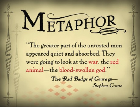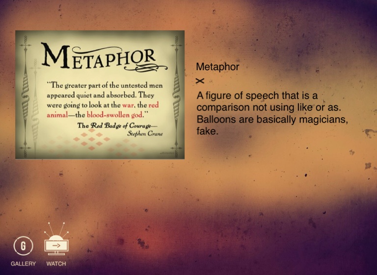 A figure of speech that is a comparison not using like or as. Balloons are basically magicians, fake.