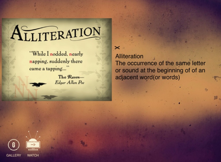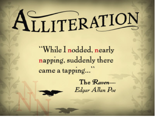 Alliteration The occurrence of the same letter or sound at the beginning of of an adjacent word(or words)
