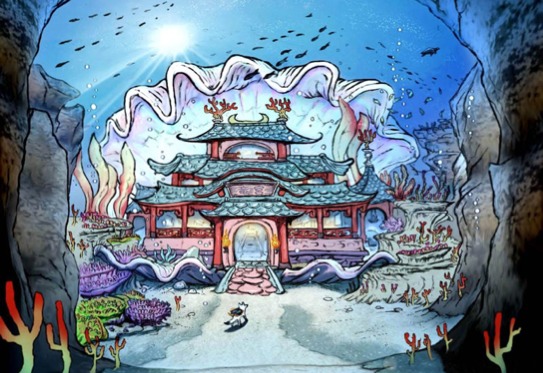 The tortoise wanted to pay Urashima Taro back, so he promised to bring Urashimo down to visit the Princess of the Sea.