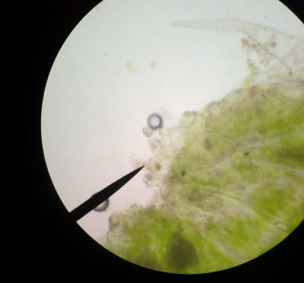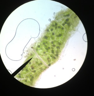 These slides, similar to the last, show many stomata, leaf veins (in a net vein shape, however), and the upper epidermal cuticles. These slides also display the cuticles hanging of the rest of the leaf allowing you to see it without the rest of the leaf behind it.