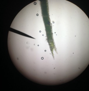 These slides of a maple leaf show us the upper leaf epidermis and the cuticles. Also they show one of the veins, which help to make up the net vein pattern that this leaf contains.