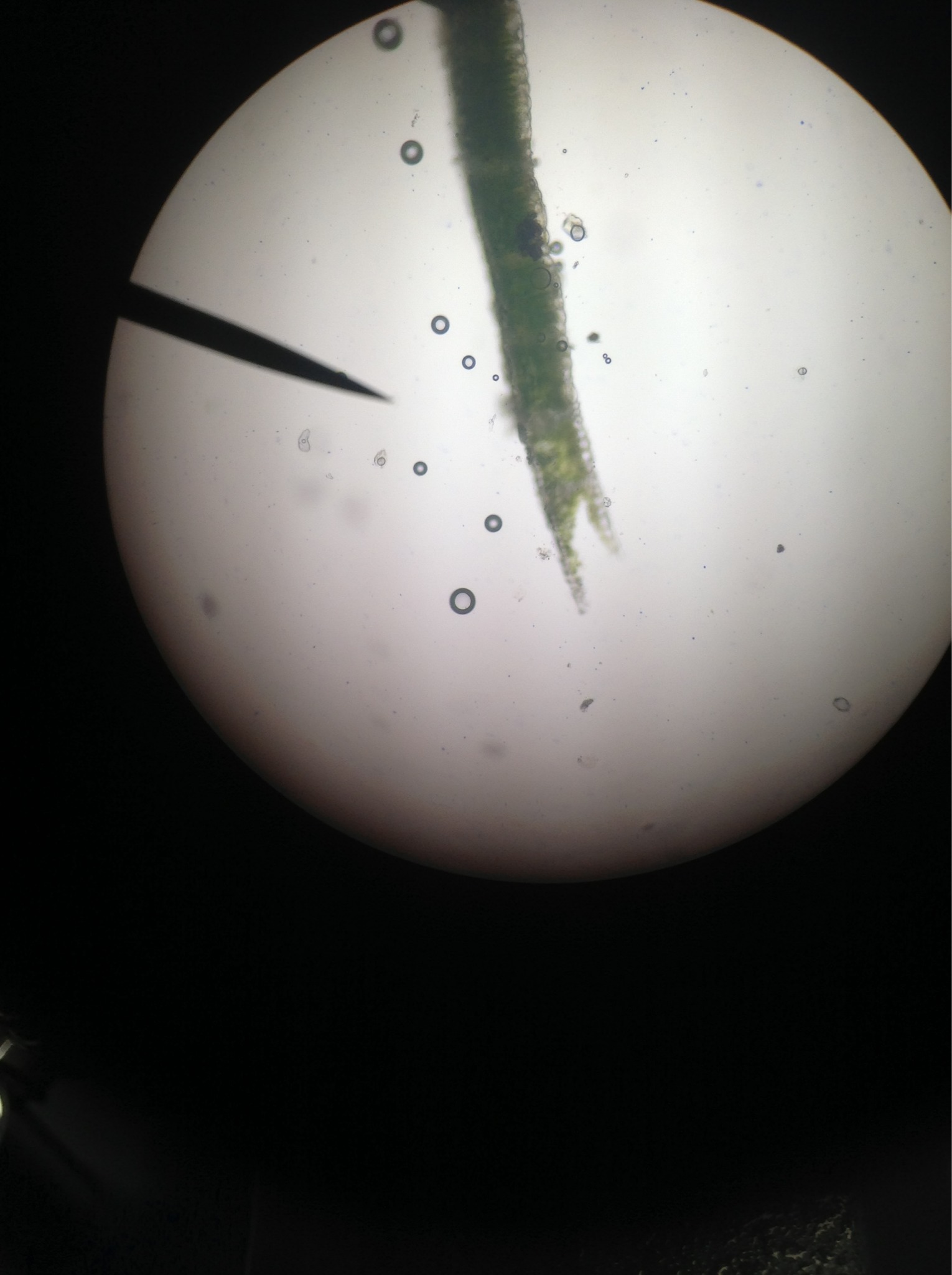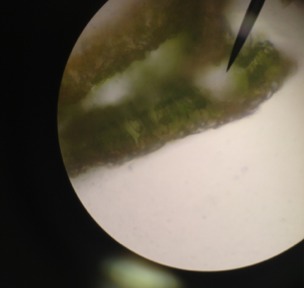 These slides of a walnut leaf show more than any other slide so far. They have clear images of the cuticles, upper epidermis, and a leaf vein just like the past ones. But, these slides also show the palisade cells, the spongy mesophyll layer, and the lower epidermal layer and cuticle.