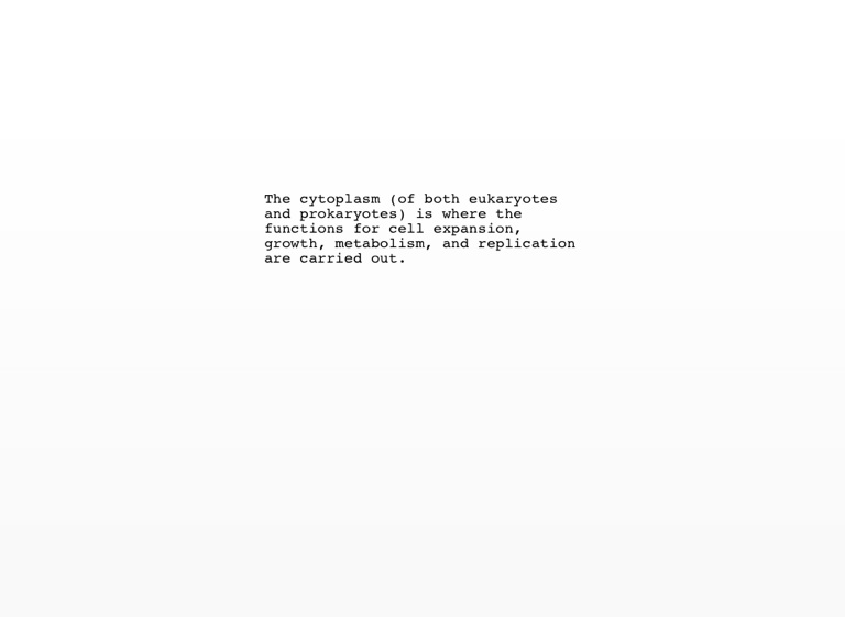 The cytoplasm (of both eukaryotes and prokaryotes) is where the functions for cell expansion, growth, metabolism, and replication are carried out.