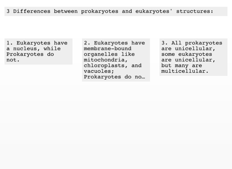 3 Differences between prokaryotes and eukaryotes' structures:
