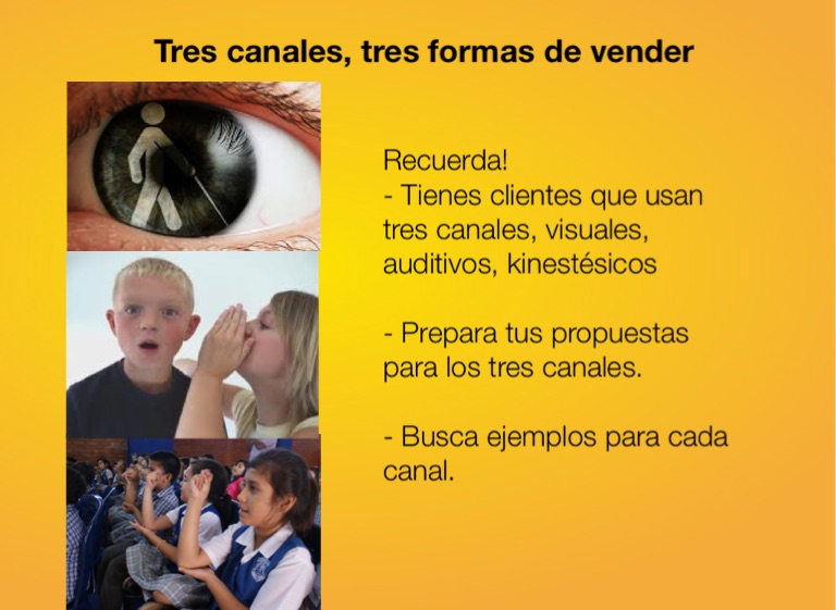 - Tienes clientes que usan tres canales, visuales, auditivos, kinestésicos