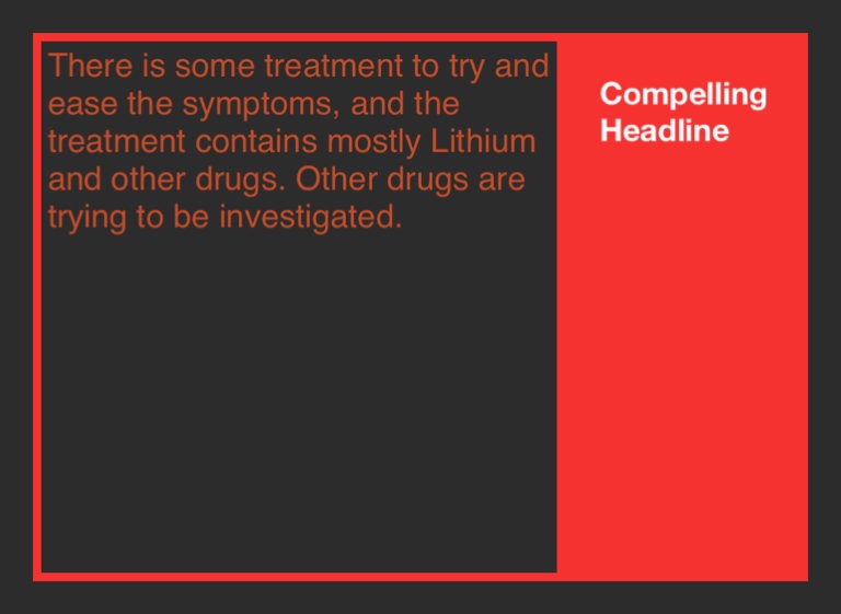 There is some treatment to try and ease the symptoms, and the treatment contains mostly Lithium and other drugs. Other drugs are trying to be investigated.