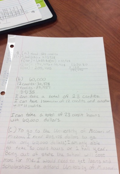 4. (a) How much would it cost for you to receive a bachelors degree at your college/university? Use function notation and show each step.